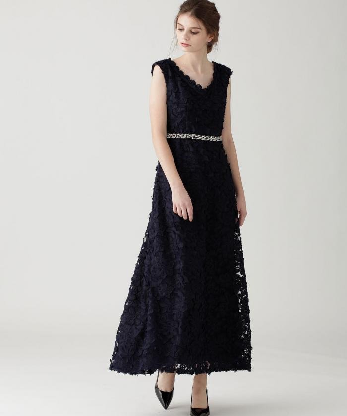 オリジナルの立体感ある3Dフラワー刺繍を全面に入れた、チュール地のロングドレス。リボン素材にビジューをあしらった、フェミニンなベルトをおつけしたメリハリあるデザイン。シュープな胸元に、フィット&フレアシルエット、さらに存在感あるロング丈など、大人仕様のエレガントなシルエットもポイントです。生地に拘ったラグジュアリーな一着をどうぞお見逃しなく。