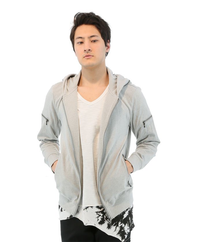 個性的なZIP使いがモード感あふれる仕上がりの、裏毛ZIPロングパーカー。