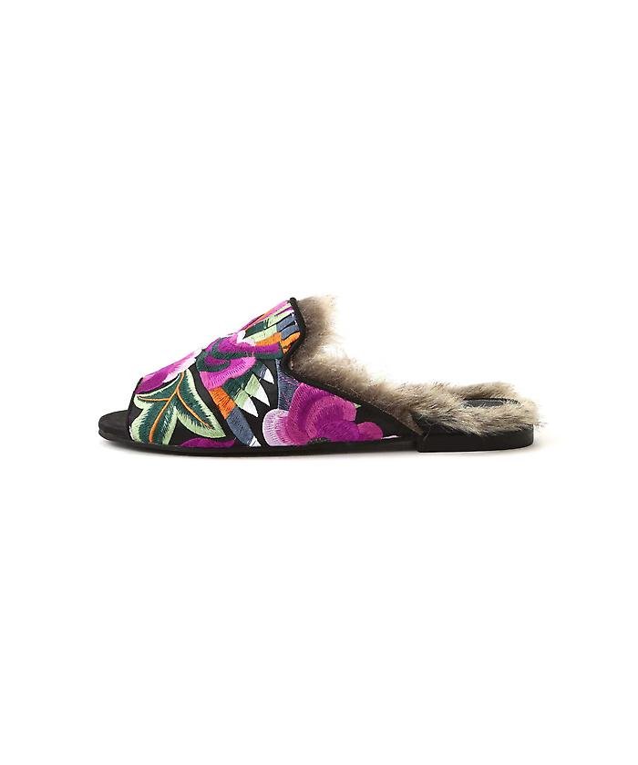 人気シューズブランド、JEFFREY CAMPBELLとコラボレーションして登場。足入れスムーズなバブーシュは、ブラックベースでシックな雰囲気がありファーがONされて存在感バツグン。カラフルな刺しゅう×ファーがとても目の惹くデザインとなり、秋先取りで履きたい1足。パンツからスカート、ワンピースまで合わせられます。※商品の特性上、生地の裁断位置により柄の出方が異なります。