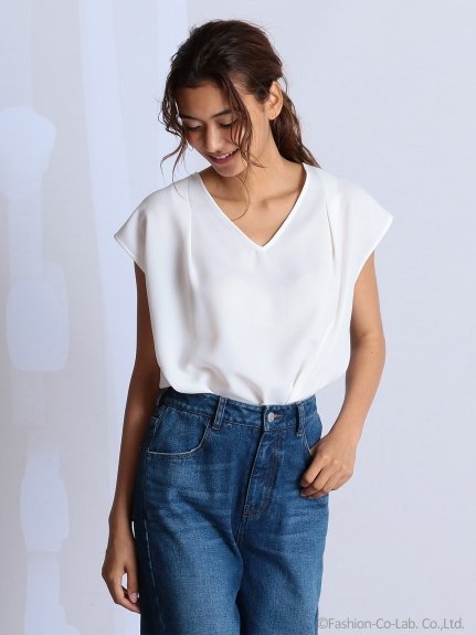 ショルダー部分にタックを配した、ゆとりのあるシルエットが上品なシフォンブラウス。きれいな開きのVネックがデコルテをきれいに見せてくれるアイテムです。