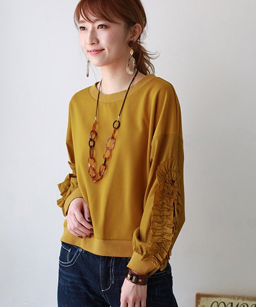 mink chair 日本製 袖フリル異素材切替プルオーバー
