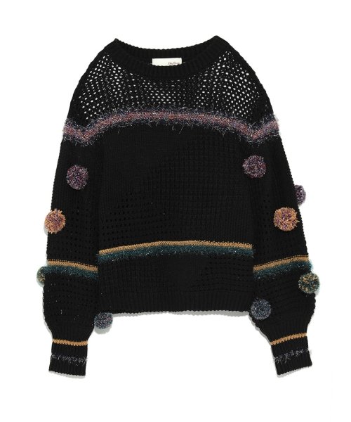 ポンポンモチーフが袖を飾る、個性派ローゲージニットの登場です。デコルテとウエスト位置に、それぞれ配色のボーダーラインを入れ、遊び心くすぐる一枚に。編み地を変えているので着こなしに奥行き感が加わります。スイートなロングスカートにも、クールなスティックパンツにも合う、汎用性の高さも魅力。