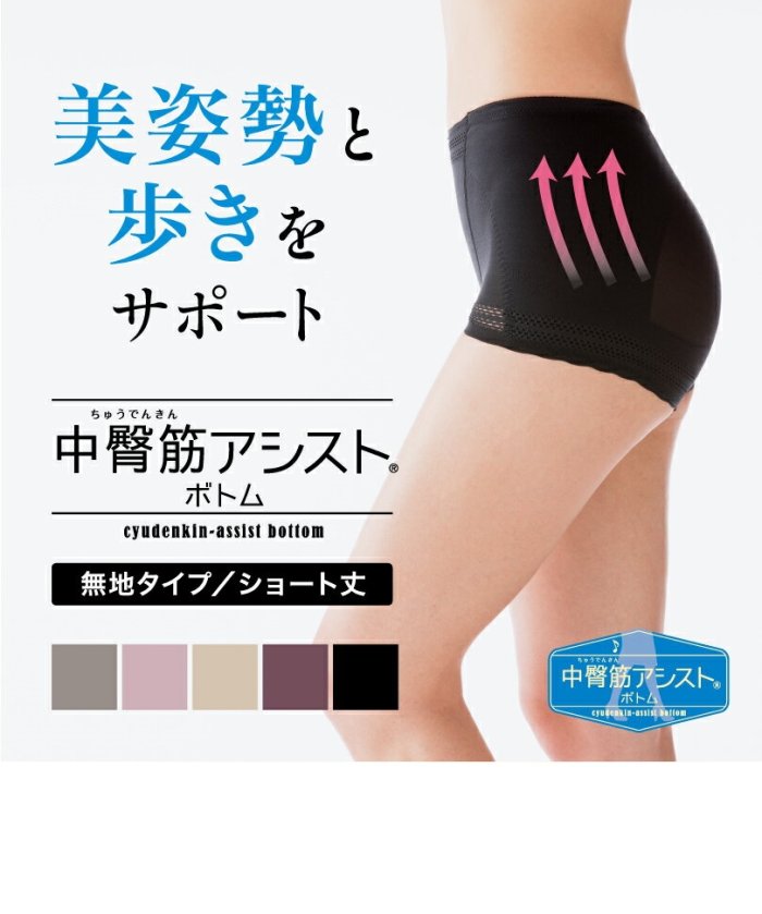 正しい姿勢 軽やかな歩行 中臀筋アシストボトム・無地ショート丈(ソフトガードル)