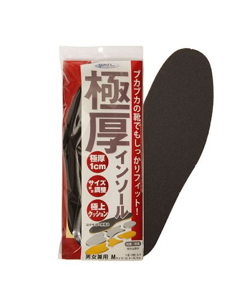 シューズフィットドットコム(Shoesfit.com) 【商品名】極厚インソール 【品番】murai17 【商品説明】ブカブカの靴でもしっかりフィットする靴の中敷(高さ調節用)です。厚さ1cmの極厚タイプ。適度なクッションで足への衝撃をやわらげます。