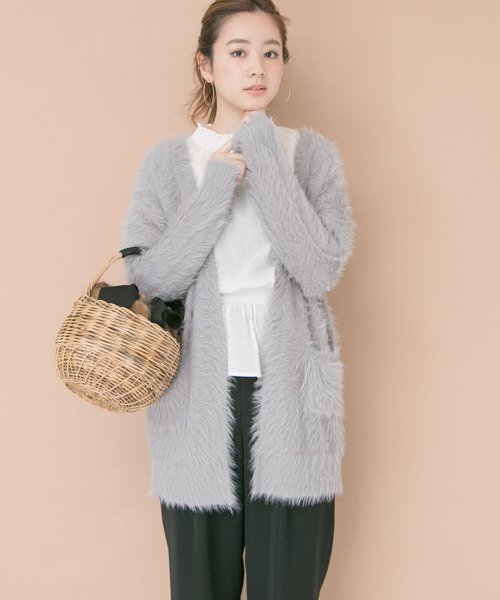毛足が長く見た目も肌触りも空気のようにふわっと軽く滑らかなカーディガン。ボタンがついていないタイプなのでさらっと羽織っていただくのにピッタリな1枚です。シンプルながら素材が魅せるこなれたニュアンスが気分をあげてくれる注目の1枚です◎