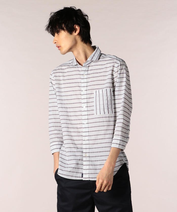パナマボーダー7分袖シャツ