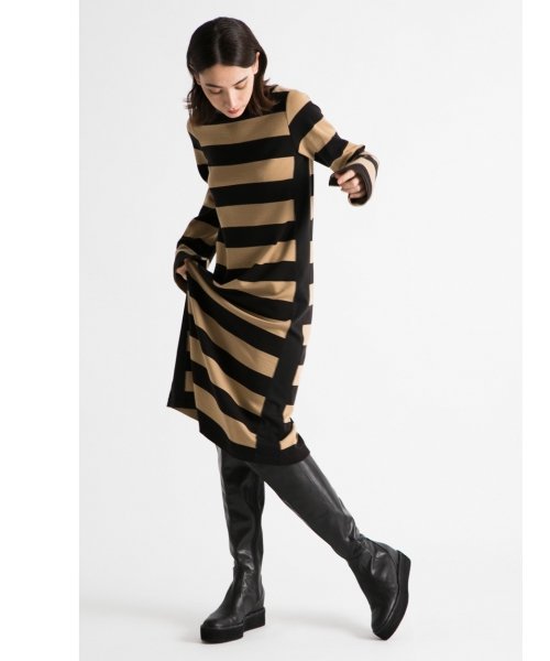 太ボーダー柄の存在感あふれるカットソーワンピース。サイドのラインがボディをスマートに見せてくれます。ロールアップアレンジがしやすい、スリット入りの袖口もポイントです。