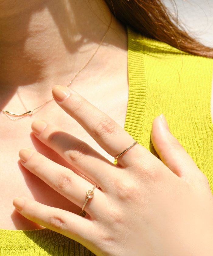 バケットカットを施した一粒のダイヤがシャープに輝くK10リング