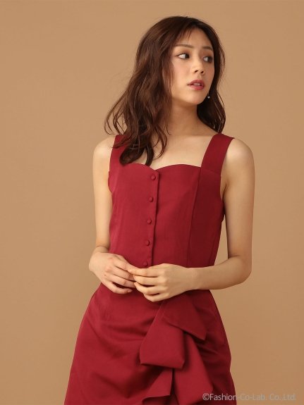 ビスチェデザインがレディな着こなしへといざなうトップス。フロントに施されたボタンラインがアクセントに。すっきりとしたコンパクトなシルエットのアイテムは、ハイウエストのボトムスと相性抜群! ワイドパンツやタイトスカートと合わせたきれいめコーデがおすすめです。