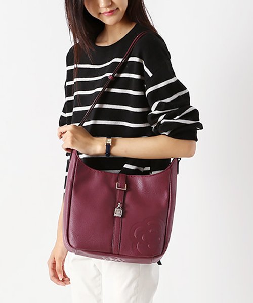 サイドにさりげなくデザインしたブランドアイコンでもあるカメリアの型押しが、品よくレディなアクセントになってくれるショルダーバッグ。お手入れのしやすいフェイクレザーを使用しているから、デイリーに愛用OK。