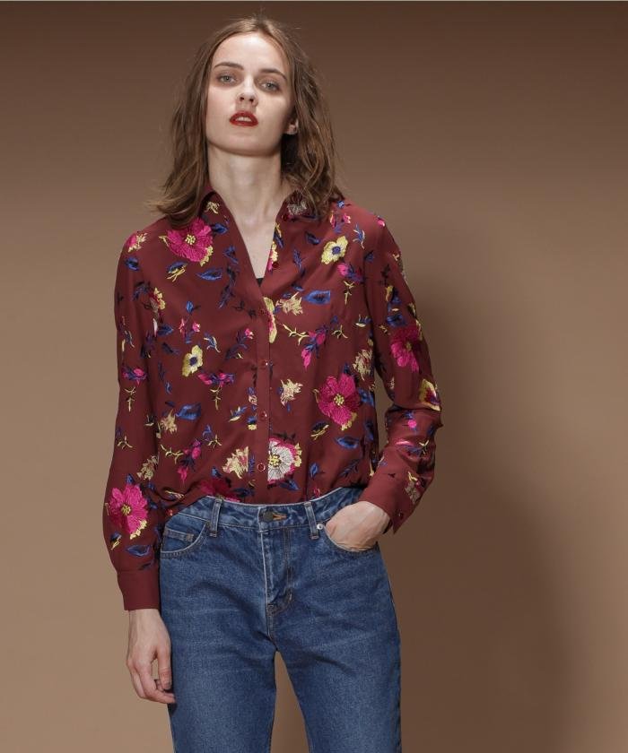 オリジナルのマルチフラワー刺繍を贅沢に施した、クラシックな印象のクレリックシャツ。シャリ感のある、しなやかで上質なジョーゼット素材も魅力。甘さを抑えた華やかなフラワー刺繍も、大人の女性らしい存在感を惹き立てます。シーズンスタイルがぐっと増す、落ち着きのある秋めいたブラウンと、コントラストを効かせたブラックの2色をご用意しました。一枚着からカーディガンやジャケットのインナー使いまで、長いシーズンお楽しみいただける一着です。同素材でお作りしたマルチフラワースカート【品番:18321139】のご用意もございます。