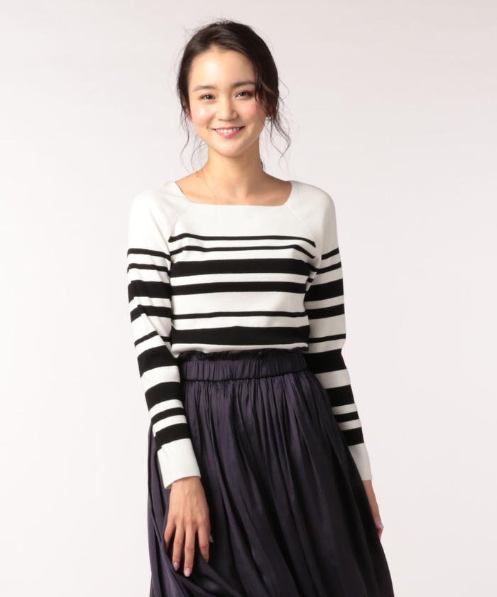 ボディラインにほど良くフィットする、上品なニットプルオーバー。定番のボーダー柄は異なるピッチで仕上げ、こなれた大人の雰囲気を演出します。他にも春らしいカラーバリエーションをご用意しております。デコルテを美しく見せてくれるスクエアネックはアクセサリーとの相性も良く、普段使いはもちろんオフィスコーデにも重宝する1枚に仕上がりました。