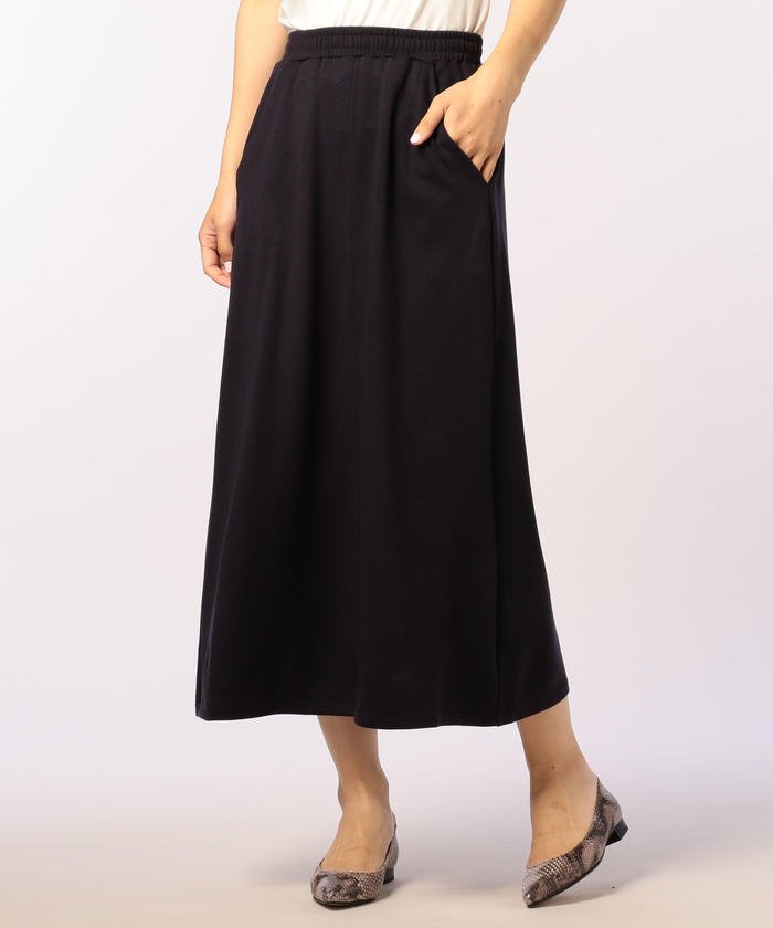 すっきりとしたシルエットのカットソー素材のロングスカート。ほどよい抜け感のあるスタイルで着こなしやすく、カジュアルなお出かけにぴったりの1枚。ポケットが充実しているのが便利で、バックに入った大き目のスリットがニュアンス感をプラス。重宝すること間違いなしのアイテムです。