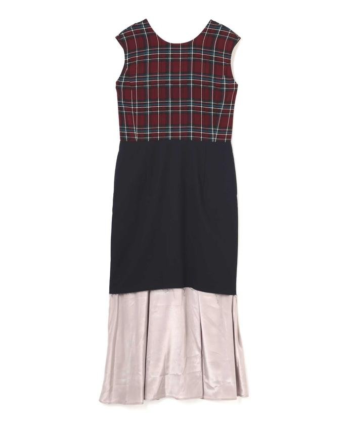 ハイカジュアルな着こなしが一枚で完成するコンビワンピース。トレンドのチェック柄をメインにしたドッキングワンピースの裾から、同色の柔らかい光沢素材を重ねたハイブリッドデザイン。Iラインシルエットがスタイル良く見せてくれ、秋らしいブリティッシュな気分と個性的なディティールがアクセントになっています。デイリーカジュアルを今年らしくアップデート出来るアイテムです。