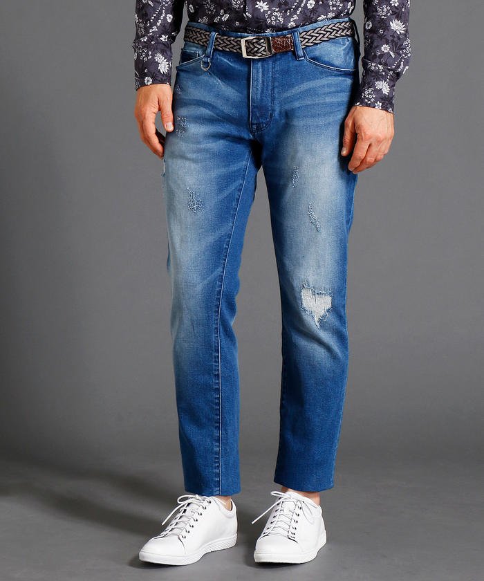 国産のストレッチデニムを使ったパンツです。スリムなテーパードシルエットながら、快適な穿き心地をお楽しみいただけます。上品で控えめなムラ糸も特徴のひとつ。ベルトループにはD管を配して機能的に。カラーによってがらっと異なるデザインに仕上げました。