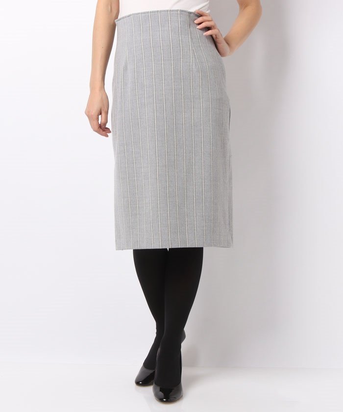 縦ラインのストライプでスタイルアップ効果も◎。デイリーにスニーカーを合わせたりきれい目なスタイルにも合わせやすい万能なスカートです。