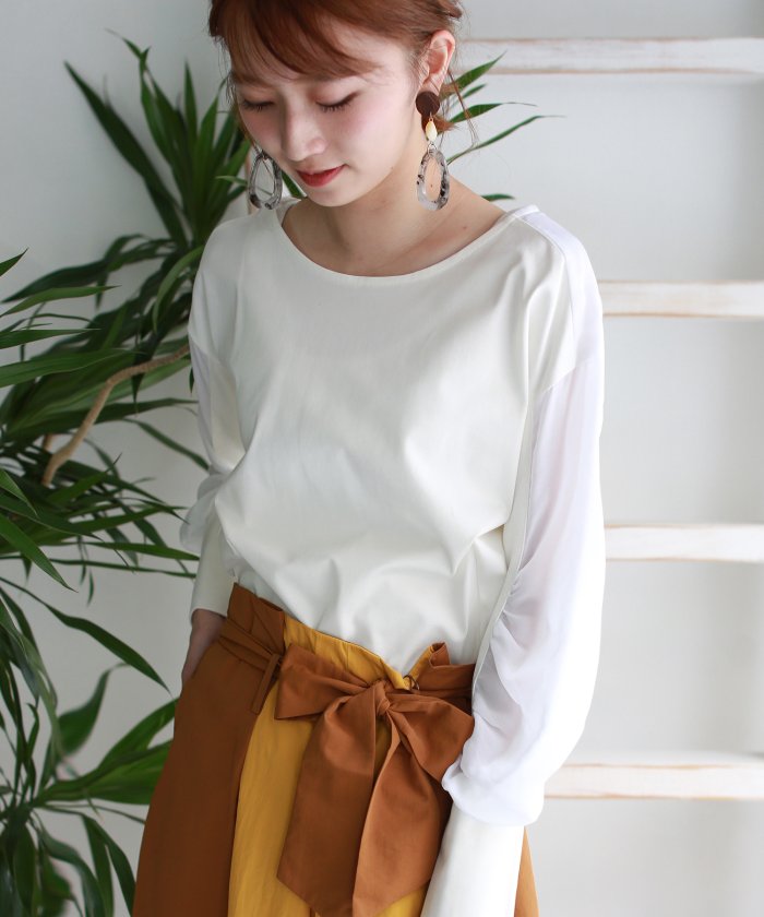 袖はほんのり透け感の生地を使用した切り替えデザイン*
