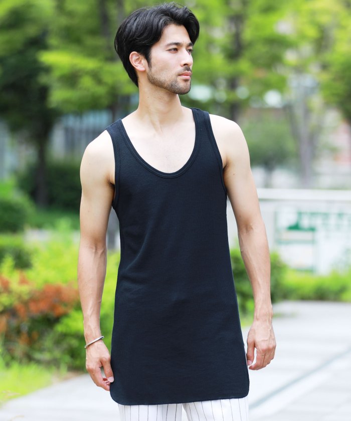 ワッフル無地ロング丈タンクトップ