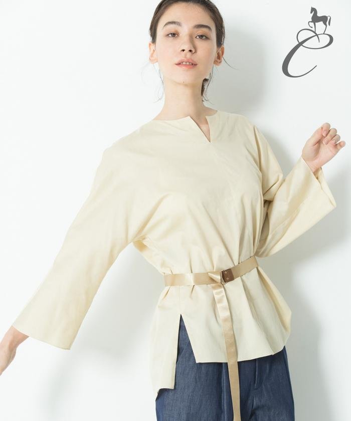 Class Lounge - 2018SS COLLECTION-オンラインショップ 数量限定展開■デザインゆったりとしたシルエットで、襟ぐりにスリットが入ったブラウスです。そのままさらっとパンツと合わせたり、付属のベルトを使いウエストマークしたり出来る2WAYアイテムです。■素材コットン100%素材です。洗いとタンブラー加工を施し、ソフトに仕上げました。とても軽く滑らかで程よい光沢感があるのが特徴的な素材です。Class Lounge - 2018SS COLLECTION-おしゃれ感度が高く、より上質なクオリティを求める。そんな審美眼に長けた女性たちに向けた、自由区のカプセルコレクション「クラスラウンジ」。限定店舗でのお取り扱いとなる特別コレクションを、オンラインショップでは数量限定で展開。>> Class Lounge 商品一覧はこちらから