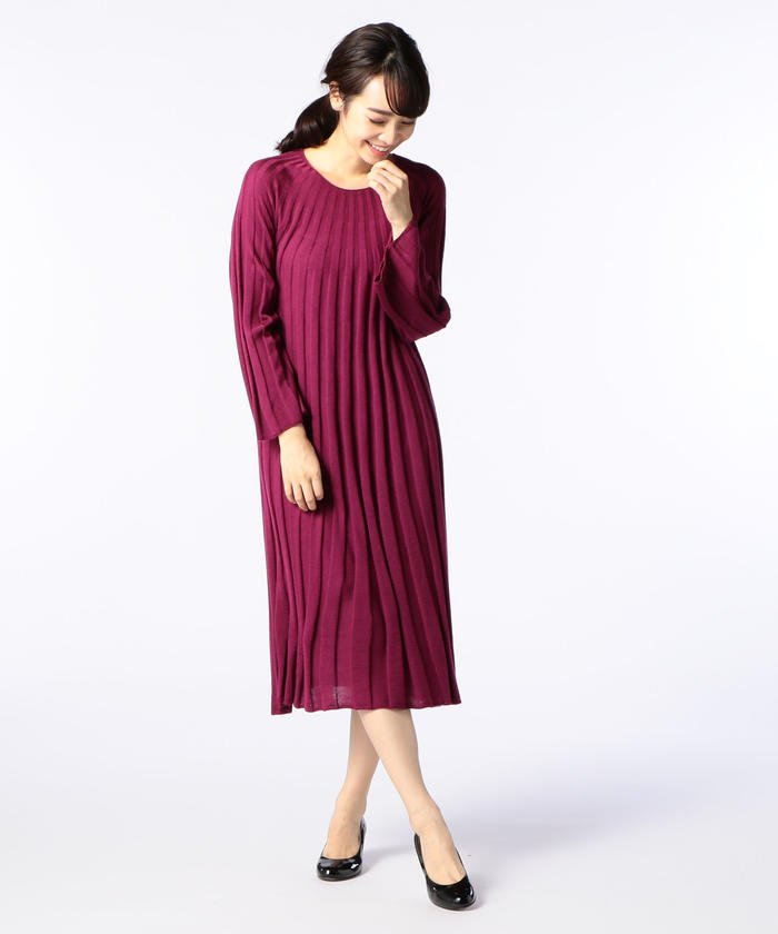 ゆるやかなフレアシルエットで、フェミニンに着こなせるワンピース。ワイドなリブ編み仕立てが落ち感のある縦のラインを強調します。ニットならではのふんわりとしたやわらかな風合いをお楽しみいただける一着は、ウエスト位置をベルトでマークしたアレンジにもおすすめです。