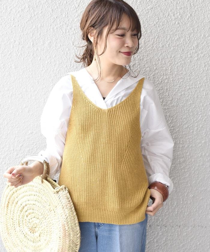 シャツやコンパクトなトップスとのレイヤードで今年らしくお洒落な印象に仕上がる1点です◎
