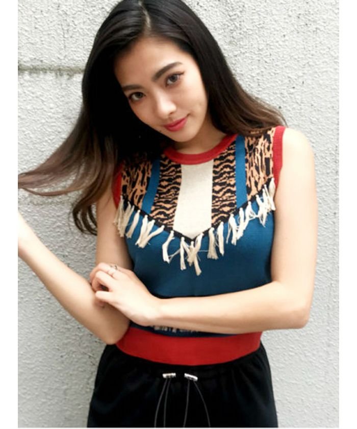 ジャガードフリンジニットタンク