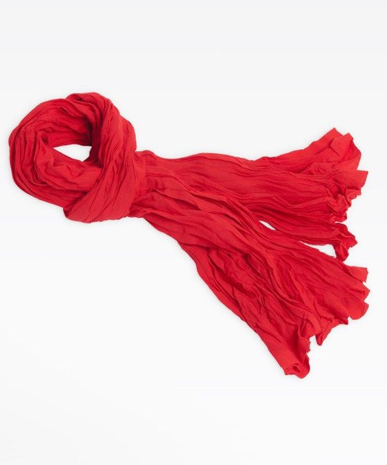 クシュクシュとシワ加工を施したコットン素材の、優しい肌触りが心地いいストール。深みのある美しい赤がコーディネートのポイントになって、インパクトをオン。シンプルなモノトーンスタイルのワンアクセントにおススメ。