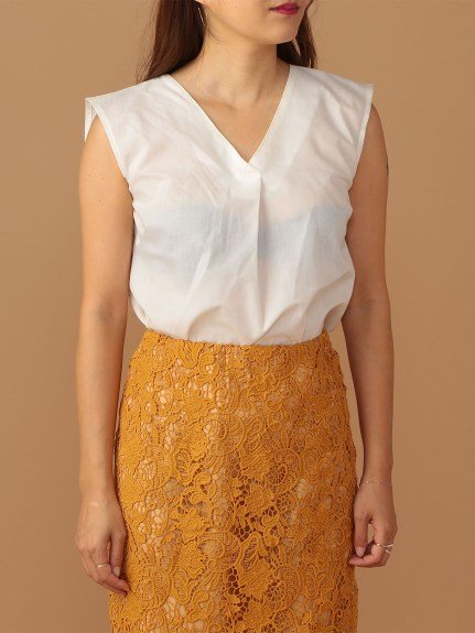 シンプルなデザインながらもバックのねじりアクセントが、センシュアルな雰囲気を醸し出すノースリーブブラウス。前後に深く開いたVネックが女性らしさを演出します。タイトスカートはもちろん、デニムパンツと合わせたきれいめカジュアルコーデもおすすめ。