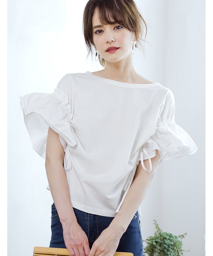 袖フリル切替カットソートップス